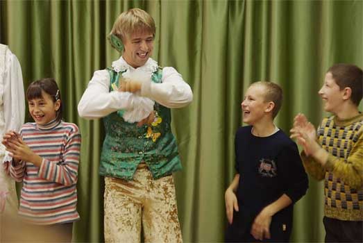 В первых числах сентября детский Коррекционный Дом № 9 на окраине Москвы посетили…. Эльфы!…. Весёлые персонажи пригласили ребят в волшебную и забавную сказку, полную приключений. В ходе представления воспитанники Детского дома показали свою ловкость, смелость, находчивость и смекалку - за что получили огромное количество призов и подарков. А завершилось всё совместным чаепитием с обилием разных вкусностей и горячей ароматной пиццей. Праздничная программа "Здравствуй школа!" прохо- дила в рамках благотворительной акции совместно с известной в Москве сетью пиццерий Fresco-Pizza и была посвящена началу учебного года. |